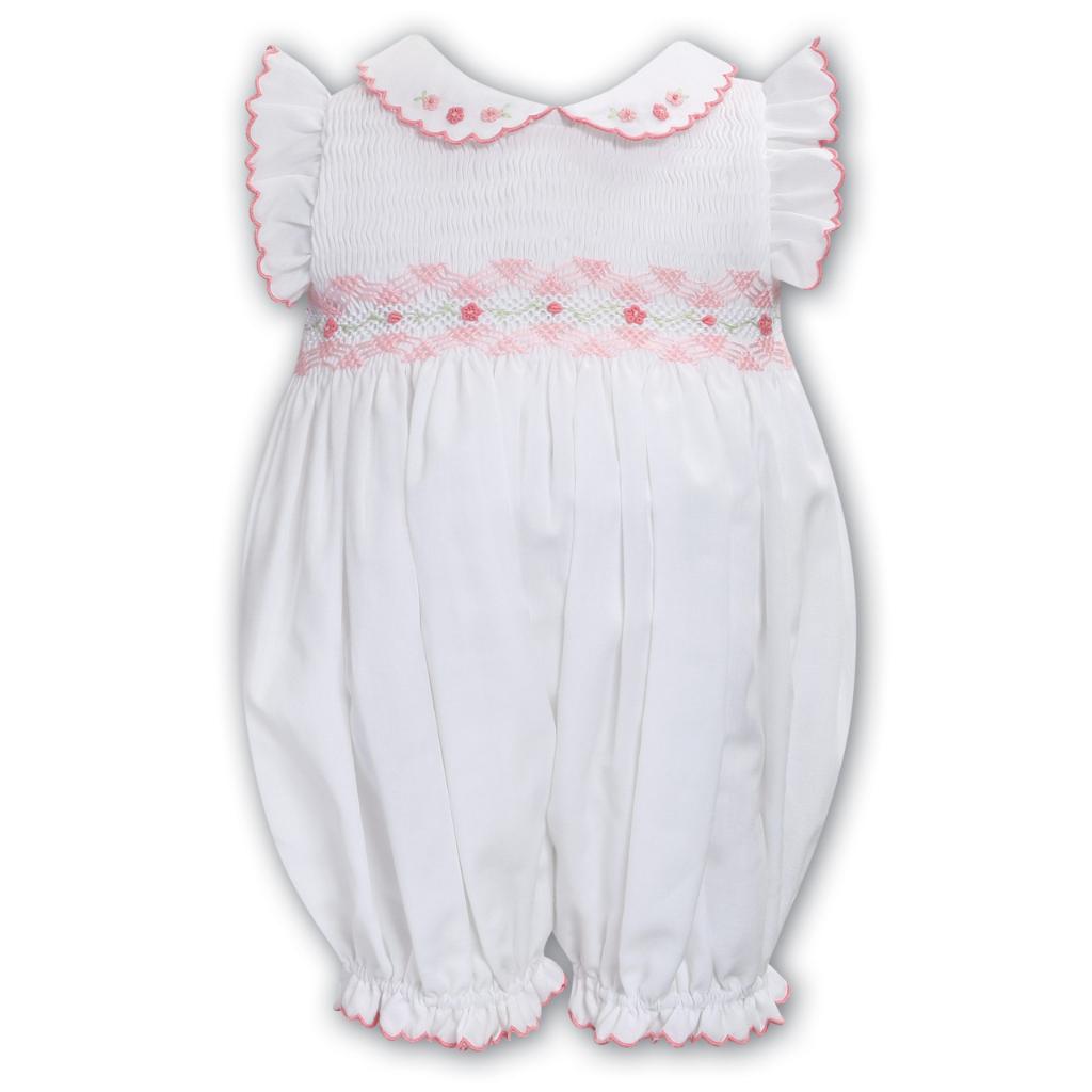 This classic piece combines comfort and elegance with features like stretchy leg holes for a snug yet gentle fit, ensuring all-day ease and freedom of movement. The contrasting white scalloped collar adds a touch of sophistication, complemented by pretty frill sleeves. Exquisitely hand-embroidered and hand-smocked, this outfit showcases delicate craftsmanship that speaks of quality and care. Ideal for summer outings, family gatherings, or photoshoots, it effortlessly blends functionality with traditional style, making it a delightful addition to your little girl’s wardrobe.
