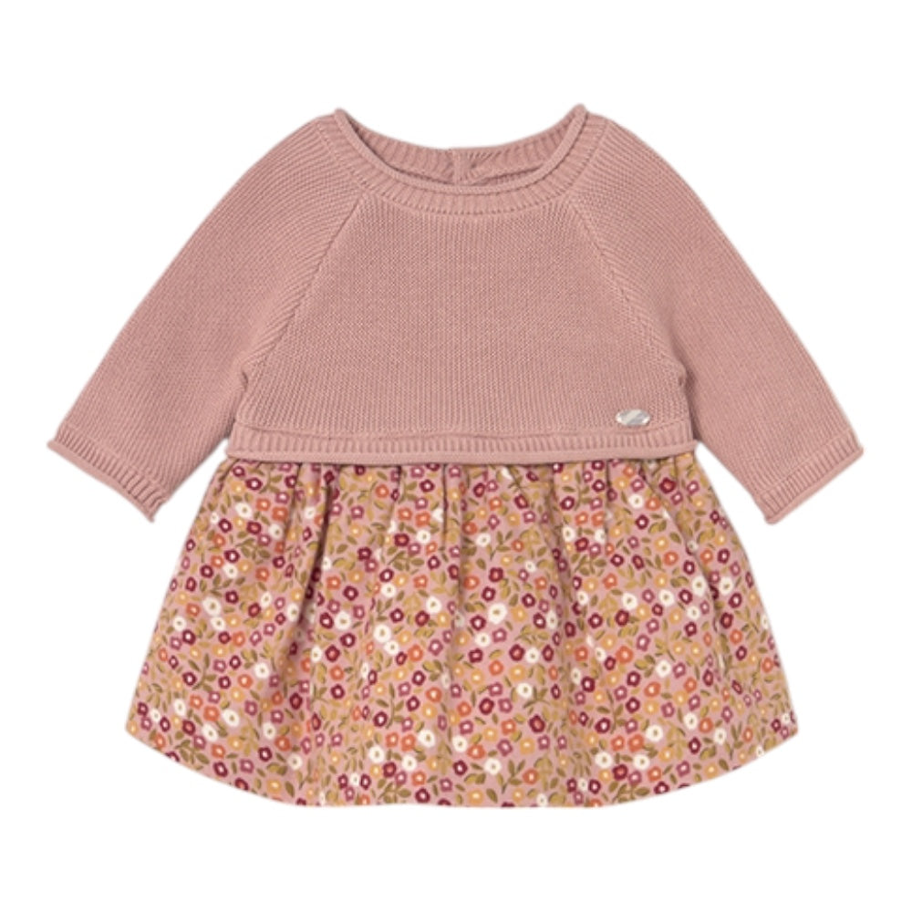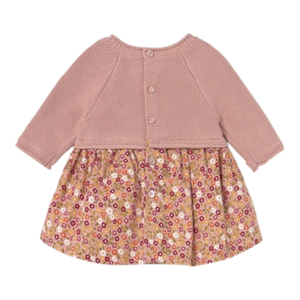 Long sleeved dress, knitted at the top. The skirt of the dress is in an all over printed design and is fully lined.