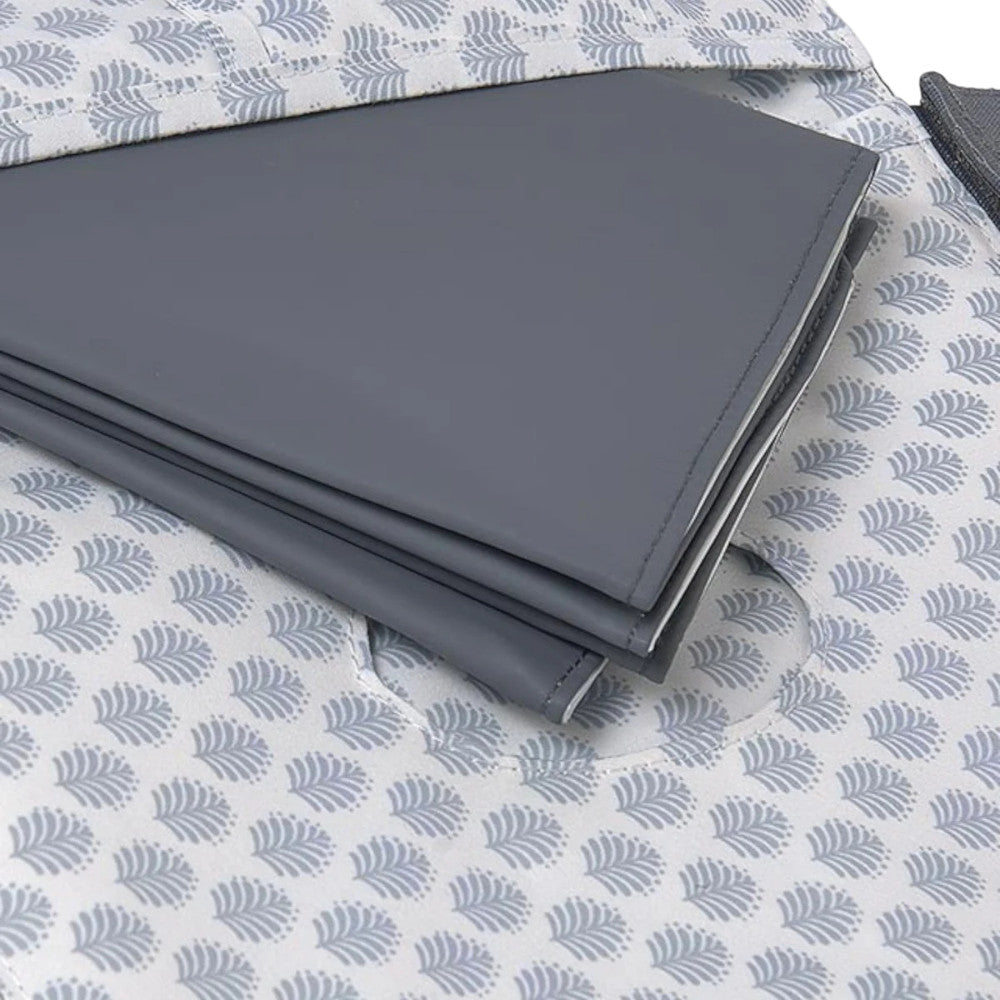 Handy organiser contains a foldable changing mat, a cut out pocket for wet wipes and a compartment for nappies etc.