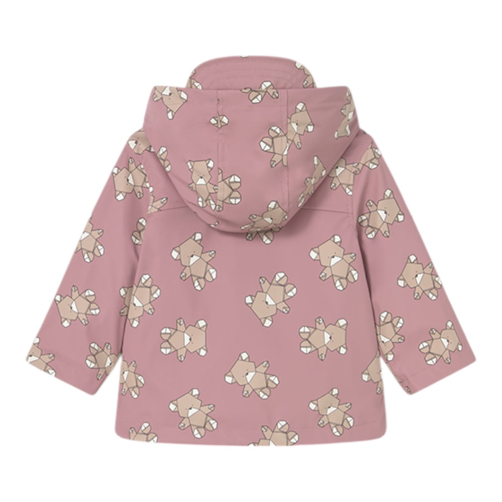 Waterproof hooded mac with an all over printed teddy bear motif. Two front pockets and a zip fastening. The mac is fully lined with an extra soft velour fabric for warmth.
