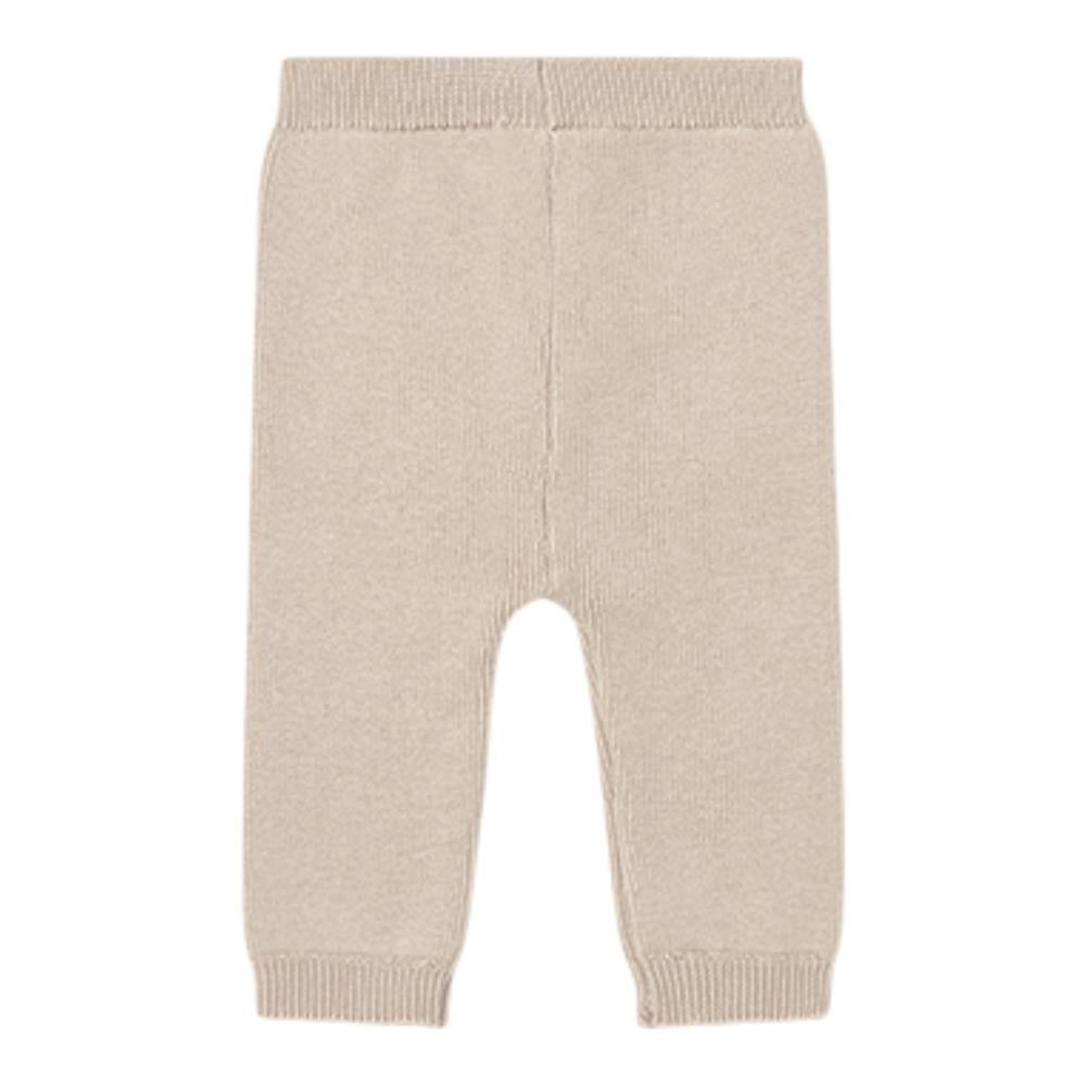 The cream cardigan is finished with a textured hem in soft beige and blush tones, giving it a refined, traditional feel. Matching beige knit leggings complete the outfit, offering comfort, stretch, and an easy fit for everyday wear.