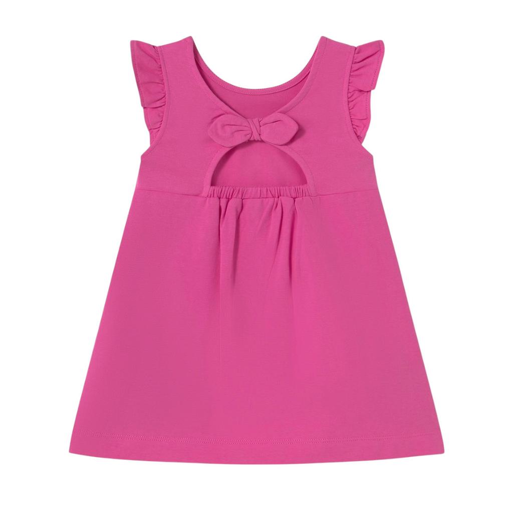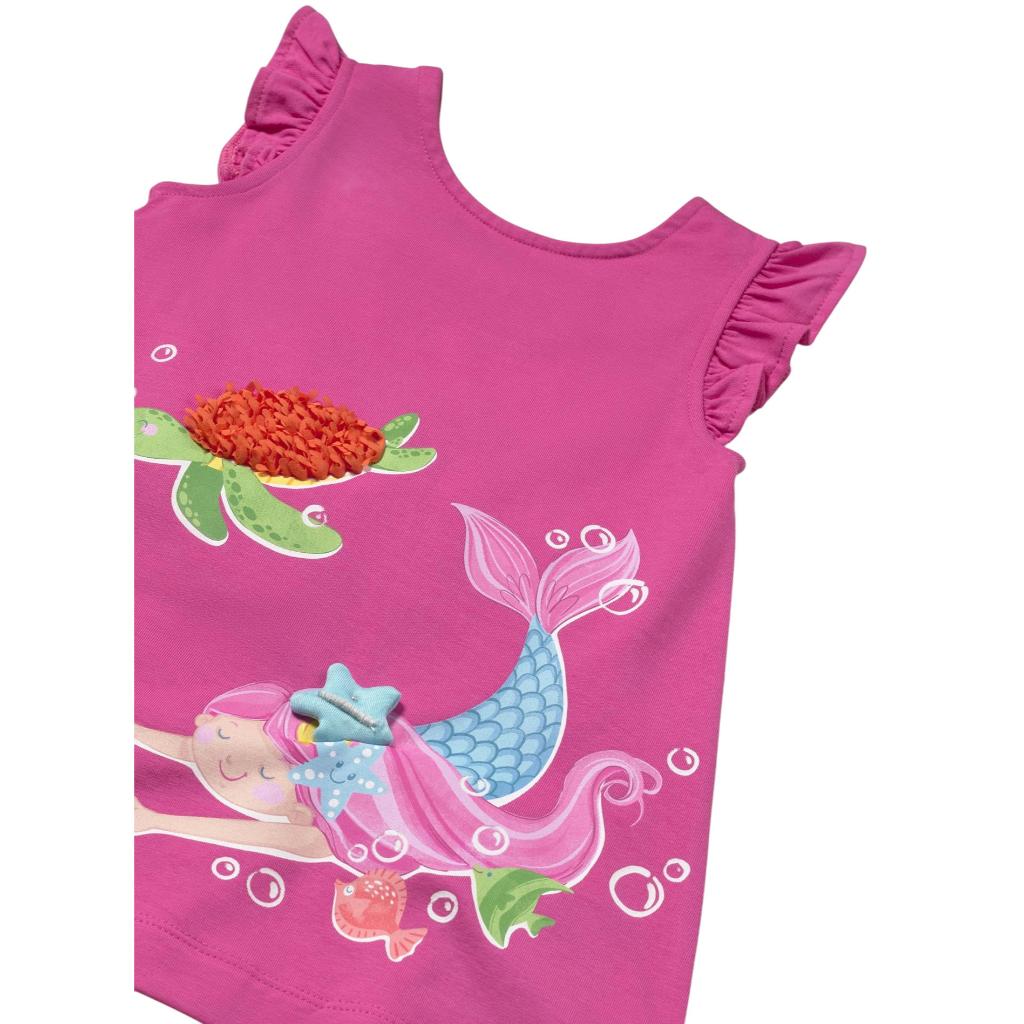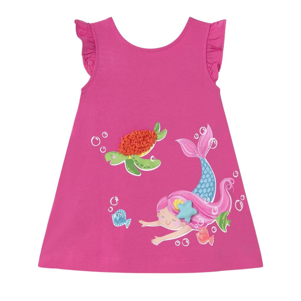 Easy to wear jersey summer dress with a printed and appliquéd mermaid design on the front, the dress has a bow and cut out detailing at the back.