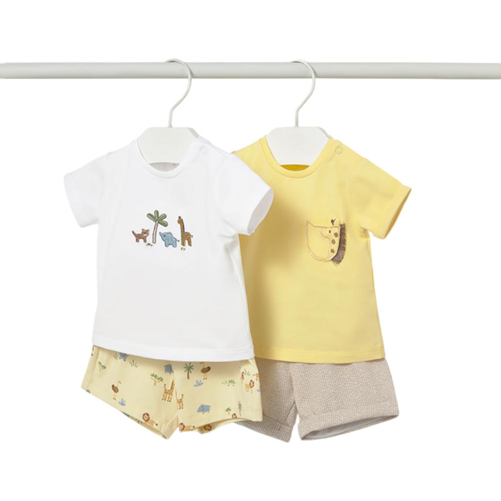 Bring a little adventure into everyday dressing with this adorable 4‑piece Safari Friends set, perfect for playtime, outings, and everything in between. Thoughtfully coordinated and beautifully detailed, it includes two tops and two pairs of shorts, giving you easy mix‑and‑match options for sunny days.