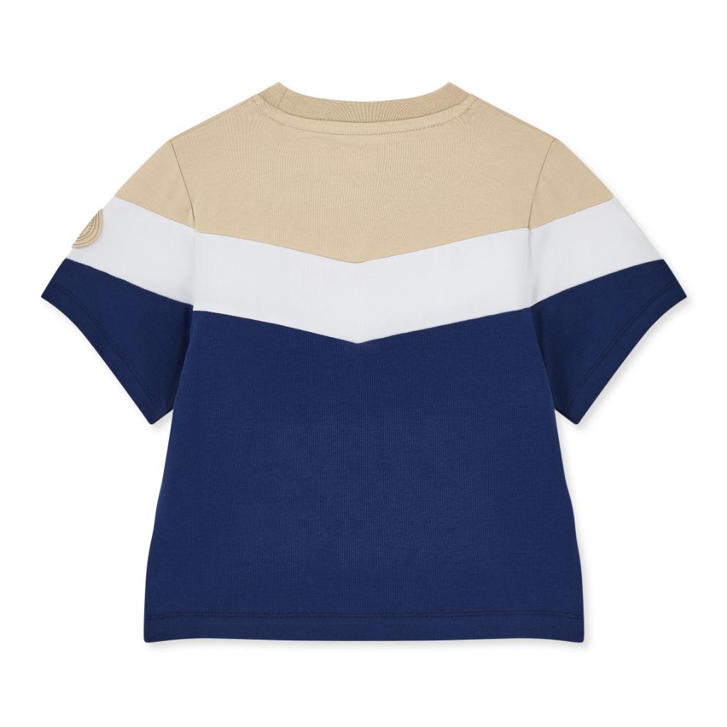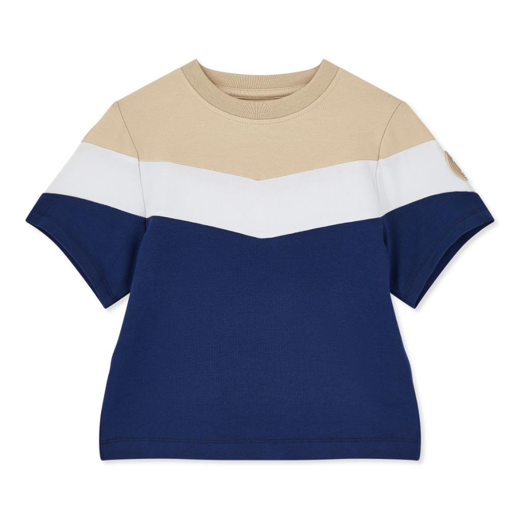 The Paco Set features a soft cotton jersey T-shirt with cut & sew panels across the chest, paired with navy matching shorts for a coordinated look. Finished with a logo patch detail.