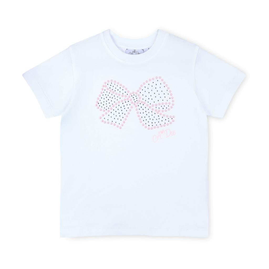The Rose skort set is pretty and practical, featuring a pleated skort with a branded waistband and paired with a white top with a pearl bow design.