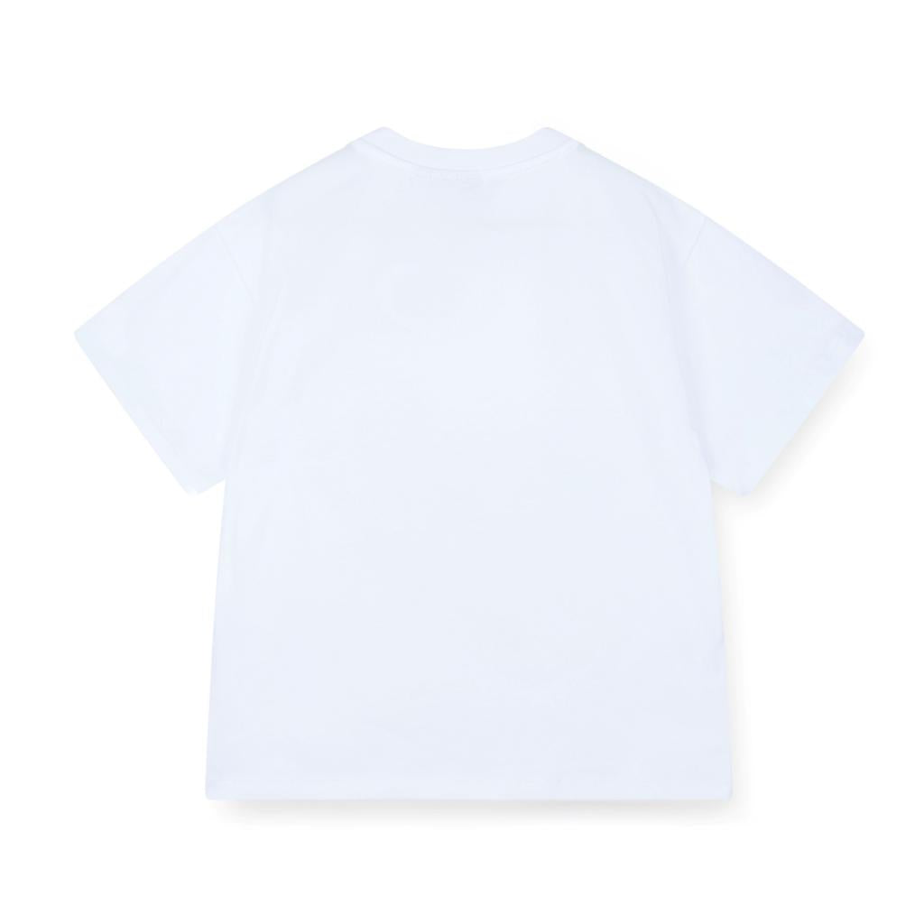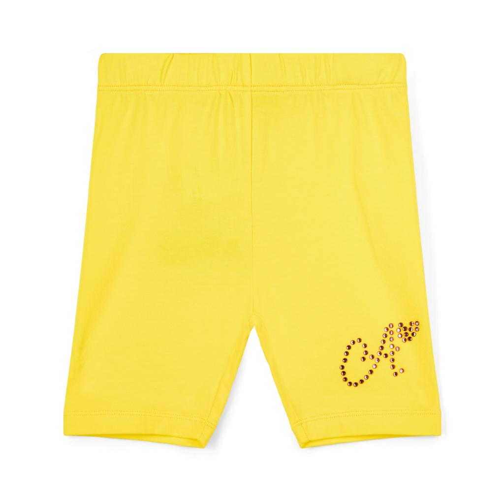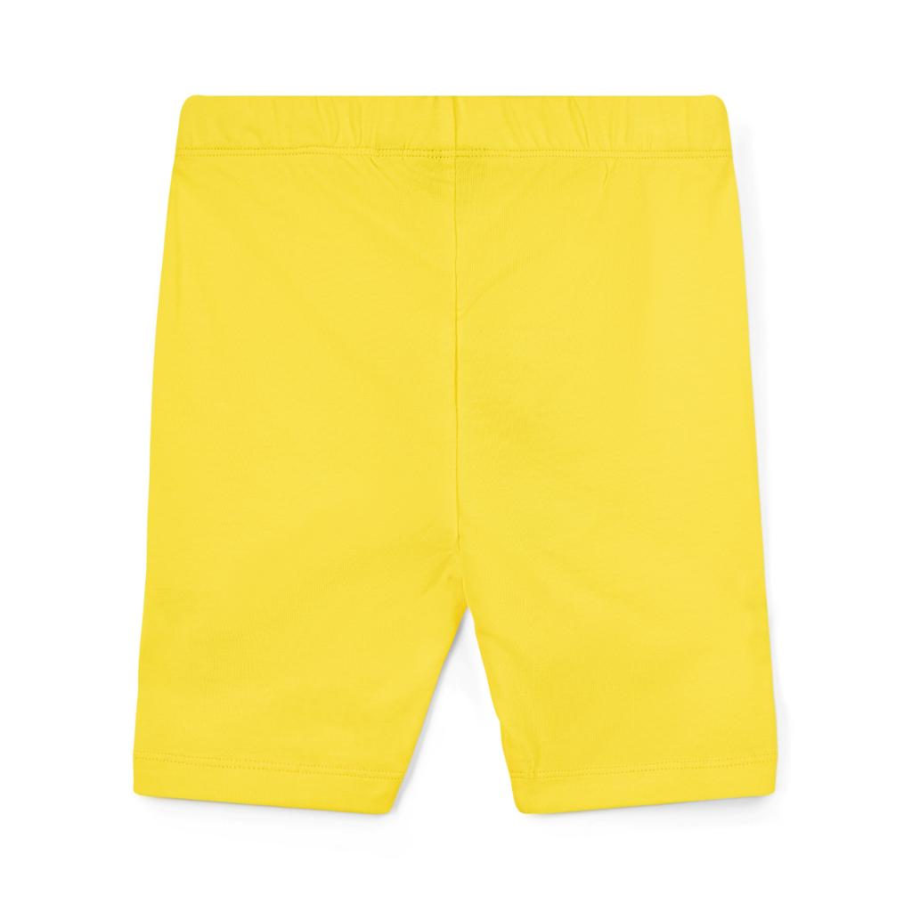 The Trinity short set features an oversized Tutti Frutti print t-shirt, paired with yellow cycling shorts finished with diamante logo on one leg.